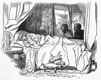 In rewriting Topsy and Miss Eva in Tom and Miss Ellie, one could argue that Kingsley borrows abolitionist imagery in order to discuss Britain's deep class fissures. The pattern of British writers adapting abolitionist rhetoric and imagery in order to contemplate the exploitation of British workers emerged during the late-eighteenth century (Gallagher 3–35. See, also, Michie). Even pro-slavery writers like William Cobbett used parallels between American slaves and subjugated British factory, mine, or agricultural workers. In these cases, proponents of slavery argued that benevolent Southern masters took better care of their enslaved workers than did the irresponsible British social system of nominally “free” wage-earners. Samuel Taylor Coleridge asserted that “the Negro Slaves were happy and contented; nay, that they were far better off in every respect than the labouring poor . . . in England” (qtd. in Gallagher 6). Stowe herself enters this debate in Uncle Tom's Cabin when Augustine St. Claire agrees with his brother Alfred's belief that “the American planter is ‘only doing, in another form, what the English aristocracy and capitalists are doing by the lower classes;’ that is . . . appropriating them, body and bone, soul and spirit, to their use and convenience” (UTC 254; vol. 2, ch. 19). St. Claire's New England cousin Miss Ophelia asks how enslaved African-Americans and British workers “can be compared”: “[t]he English laborer is not sold, traded, parted from his family, whipped” (UTC 254; vol. 2, ch. 19). St. Claire replies “[h]e is as much at the will of his employer as if he were sold to him. The slave-owner can whip his refractory slave to death, – the capitalist can starve him to death. As to family security, it is hard to say which is the worst, – to have one's children sold, or see them starve to death at home . . . . buying a man up, like a horse . . . sets the thing before the eyes of the civilized world in a more tangible form, though the thing done be . . . in its nature, the same; that is, appropriating one set of human beings to the use and improvement of another, without any regard . . . [for the workers’] own [lives]” (UTC 254–55; vol. 2, ch. 19).