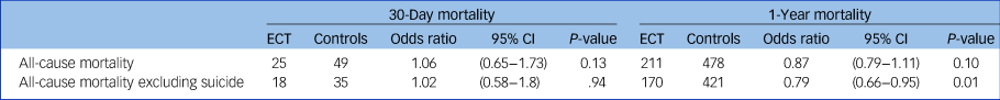 Table 3 Results of logistics regression of odd ratios of mortality, comparing index electroconvulsive therapy (ECT) courses and a matched group of patients discharged from mental health units