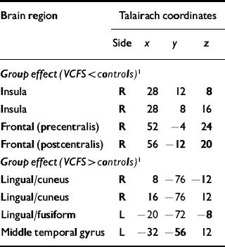 Table 1 Between-group differences in brain activity during emotional processing task in the velo-cardio-facial syndrome group (n=8) compared with IQ-matched controls (n=9)