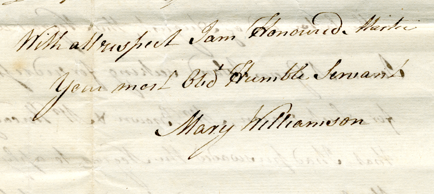 Figure 1 Mary Williamson's signature on her letter to Haughton James. Reproduced with the permission of Melissa James.