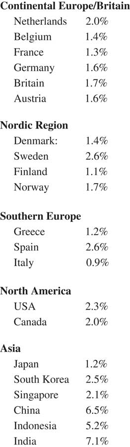 The most recent GDP projections for 2017 (Figure 1) show that even the best performing European countries – such as Germany at 1.6% – remain below the 2% per year economic growth rate that economists consider the bare minimum for a sustainable economic expansion. Most of the rest of the continent will continue to experience 1–2% as the best level of growth it can sustain. Soberingly, UK growth in the first quarter of 2017 was only 0.2% at an annual rate (Jackson, Reference Jackson2017), suggesting recent government projections for the United Kingdom, expecting GDP growth of 1.6% in 2018 and 2019 (Nixon, Reference Nixon2017), may be substantially overstated. Moreover, this continued slow growth is occurring despite ongoing large monetary stimulus from the Bank of England and the European Central Bank, which still maintain artificially low interest rates as well as buying government bonds to add liquidity into the money supply.