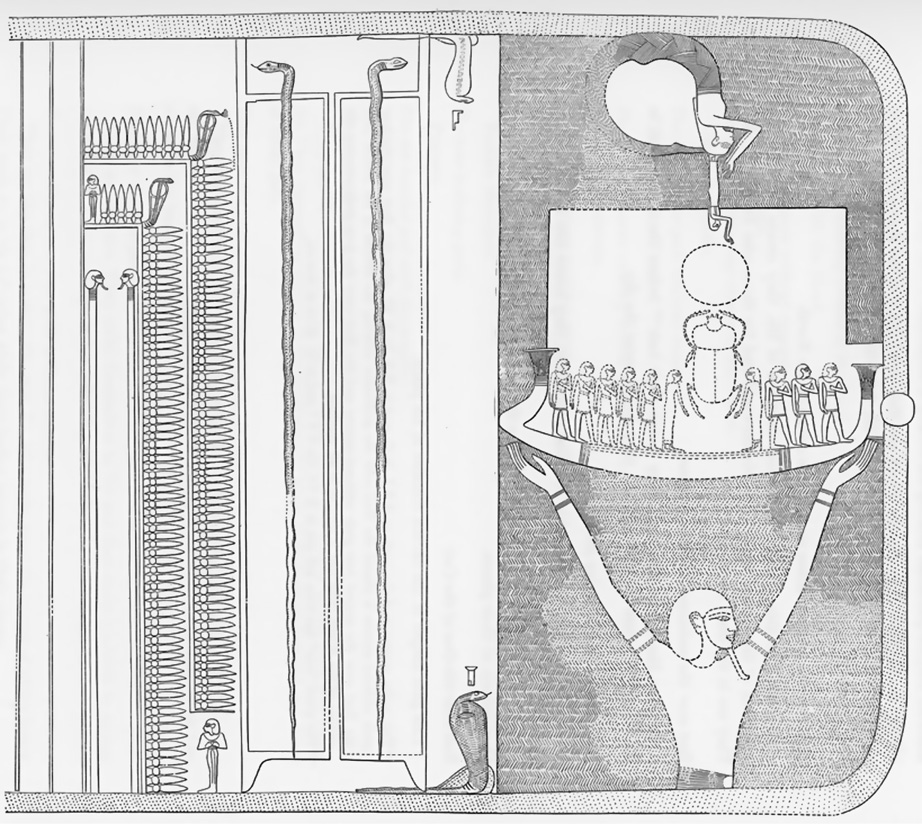 27. Drawing of the final scene of the ancient Egyptian Book of Gates, Tomb of Ramesses VI.