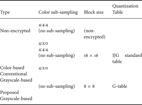 In I g without color sub-sampling, the number of pixels of I g is the same as the conventional one. This means that the number of blocks is also identical. As a result, the key space of this type is equal to that with the conventional one inequation (8).