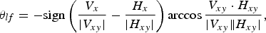 (4)$$\theta_{lf} =-{\rm sign} \left({{V_x} \over \vert V_{xy}\vert}-{{H_x}\over{\vert H_{xy}\vert}}\right) \arccos {V_{xy}\cdot H_{xy}\over{\vert V_{xy}\Vert H_{xy}\vert}},$$