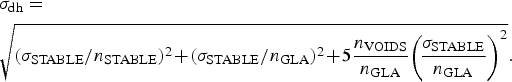 $$\eqalign{& \sigma_{\rm dh} = \cr & \sqrt {(\sigma _{{\rm STABLE}} /n_{{\rm STABLE}} )^2 \!+\! (\sigma _{{\rm STABLE}} /n_{{\rm GLA}} )^2 \!+\! 5\displaystyle{{n_{{\rm VOIDS}}} \over {n_{{\rm GLA}}}} \!\left( \!{\displaystyle{{\sigma _{{\rm STABLE}}} \over {n_{{\rm GLA}}}}} \right)^{2}}.}$$