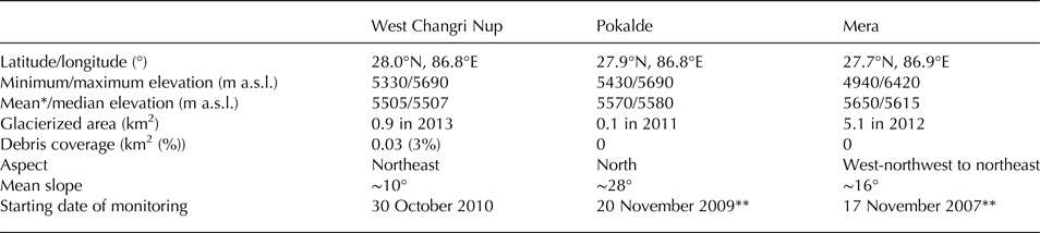 Table 1. Characteristics of the three monitored debris-free glaciers located in the Everest area