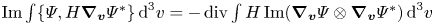 Here, the last equality follows from $\operatorname {Im} \int \{ \varPsi ,H\boldsymbol {\nabla }_{{\boldsymbol {v}}}\varPsi ^*\}\,\textrm {d}^3v=-\operatorname {div}\int H\operatorname {Im}(\boldsymbol {\nabla }_{{\boldsymbol {v}}}\varPsi \otimes \boldsymbol {\nabla }_{{\boldsymbol {v}}}\varPsi ^*)\,\textrm {d}^3v$