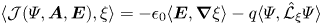 and computing $\langle {\mathcal {J}}(\varPsi ,{\boldsymbol {A}},{\boldsymbol {E}}),\xi \rangle =-\epsilon _0\langle {\boldsymbol {E}},\boldsymbol {\nabla }\xi \rangle -q\langle \varPsi ,\hat {{\mathcal {L}}}_{\xi }\varPsi \rangle$