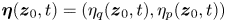 of the Lagrangian trajectory $\boldsymbol \eta ({\boldsymbol {z}}_0,t)=(\eta _q({\boldsymbol {z}}_0,t),\eta _p({\boldsymbol {z}}_0,t))$