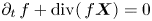 , which is accompanied by the continuity equation $\partial _t\,f+{\operatorname {div}(\,f{\boldsymbol {X}})=0}$