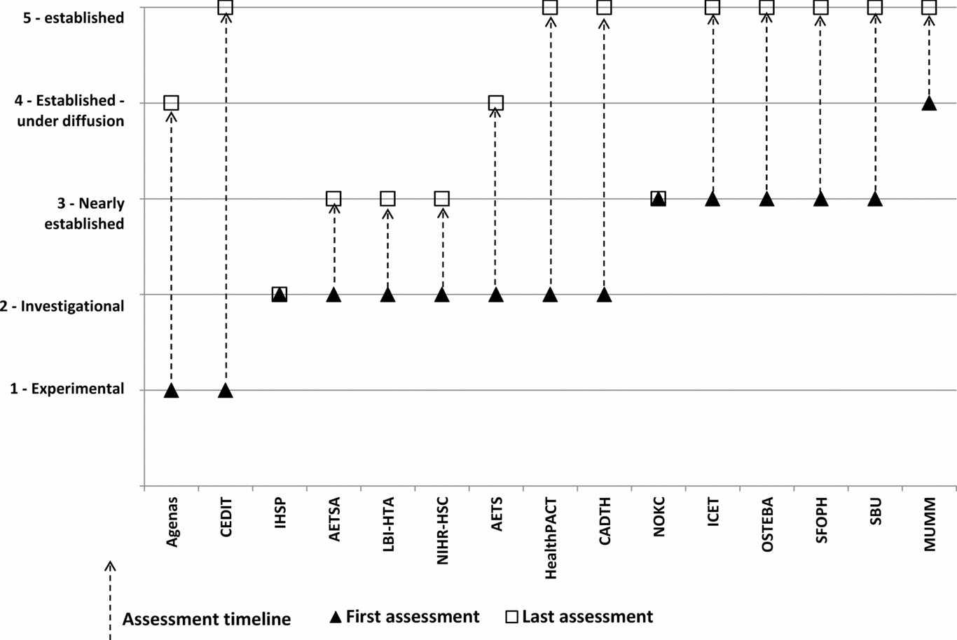 All but one agency used active methods of identification with all but two, starting identification in the experimental or investigational stages of the technology life cycle. We found that many agencies continue to identify technologies when they are “established”, challenging the current boundaries of EAA activity. This is however, consistent with the finding that many EAA systems were an integral part of a HTA agency or an organization carrying out HTA activities. In these cases the function of the EAA system may not be as a separate entity with specific outputs confined to information about a technology before it has diffused.