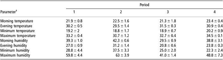 Table 1 LSM and s.e. for ambient temperature (°C) and relative humidity (%) at the station during the experiment