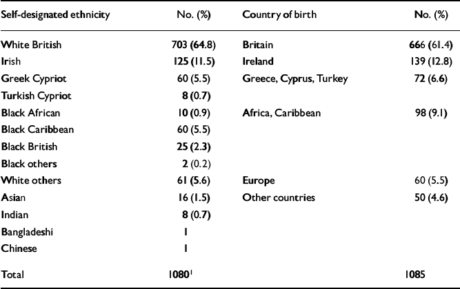 Table 1 Self-designated ethnicity and country of birth