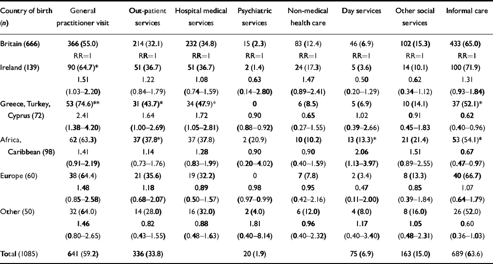 Table 3 Contact (%) with service by country of birth: significance, relative risk and confidence intervals compared with UK-born population